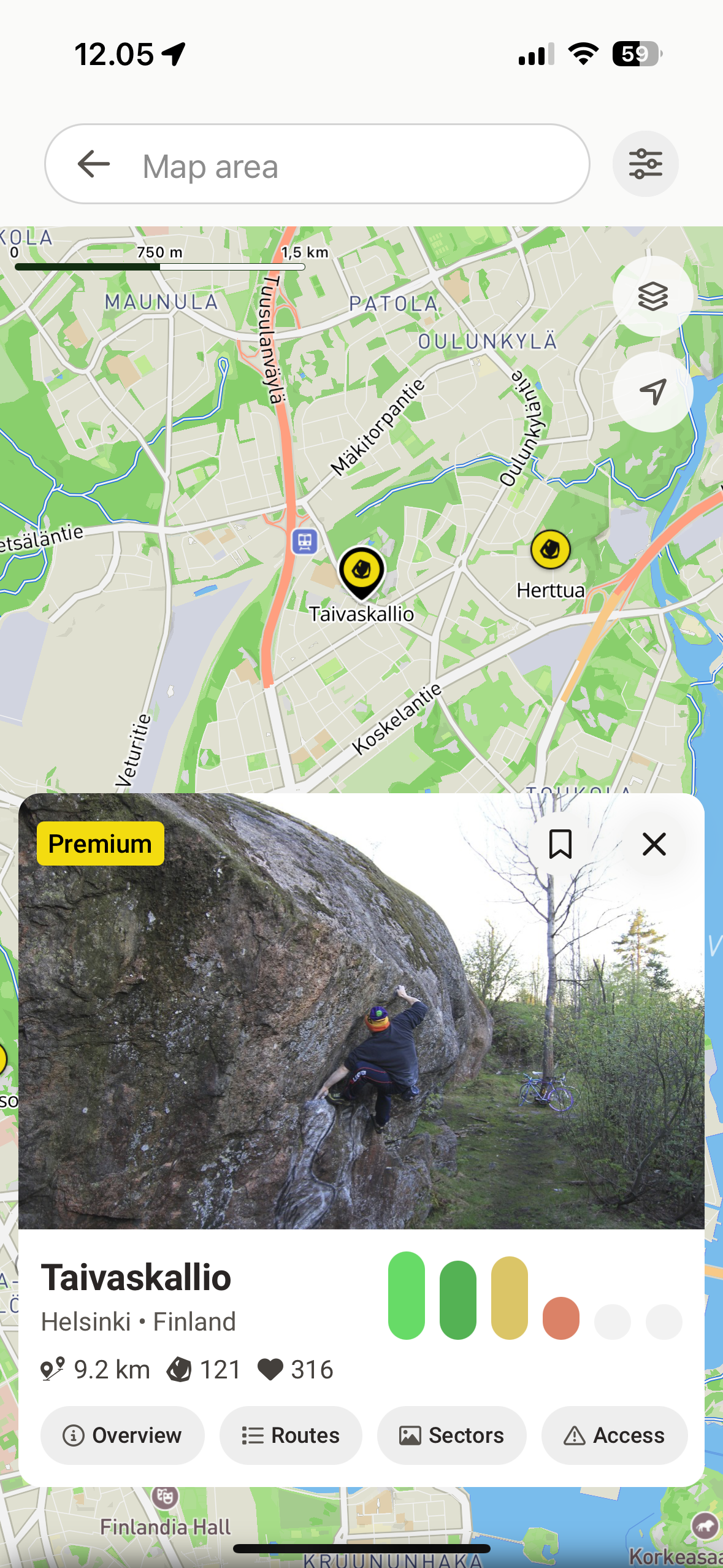 Map view that you are getting after taping on the Location on the area page is very awkward to use.