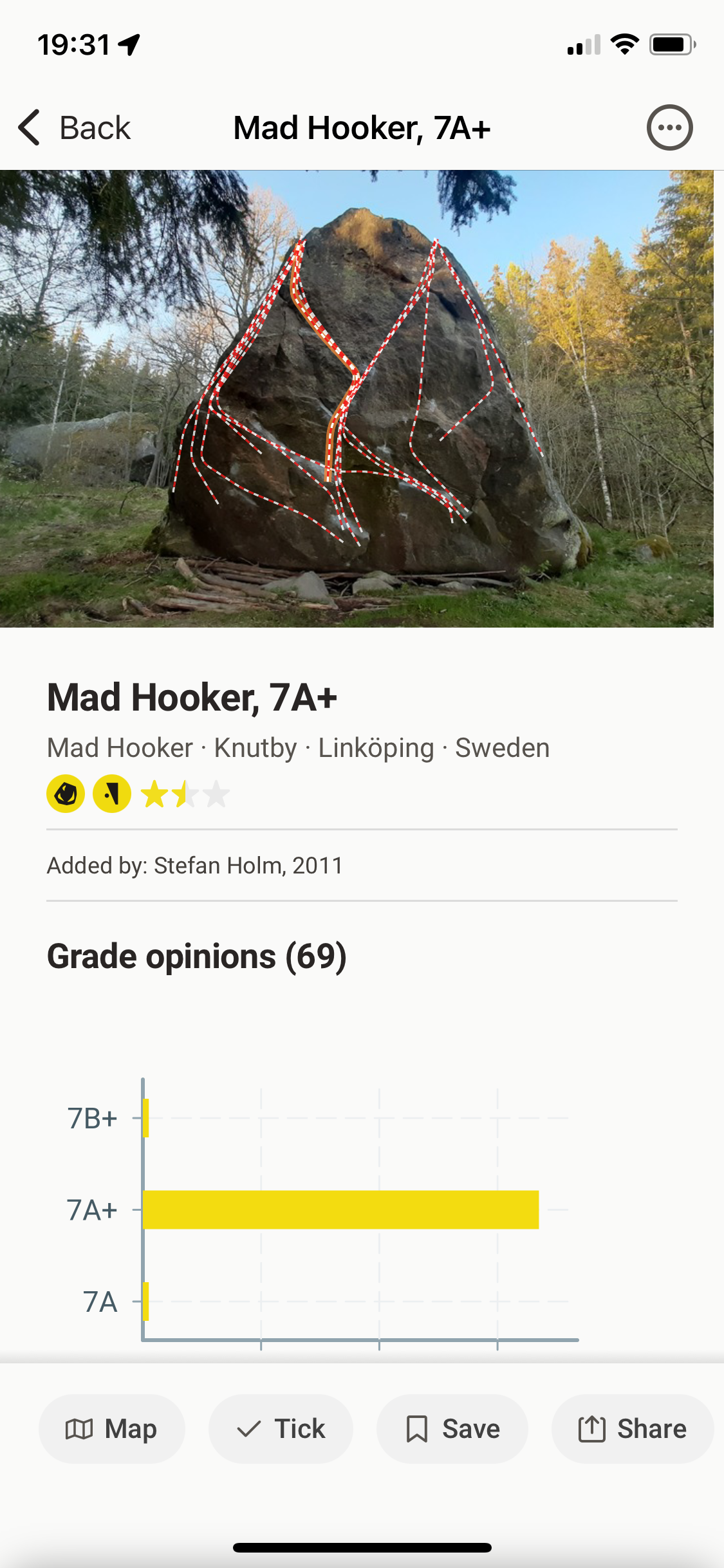 When there are several routes on same face especially for boulders, it is al mist impossible to distinguish selected route on topo.