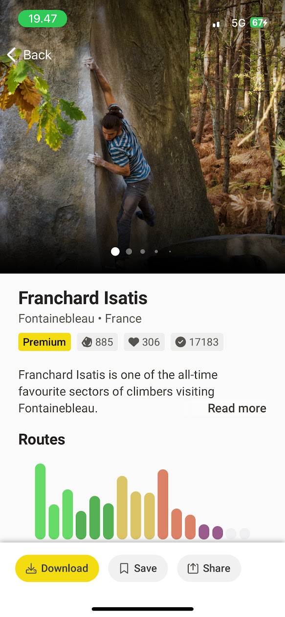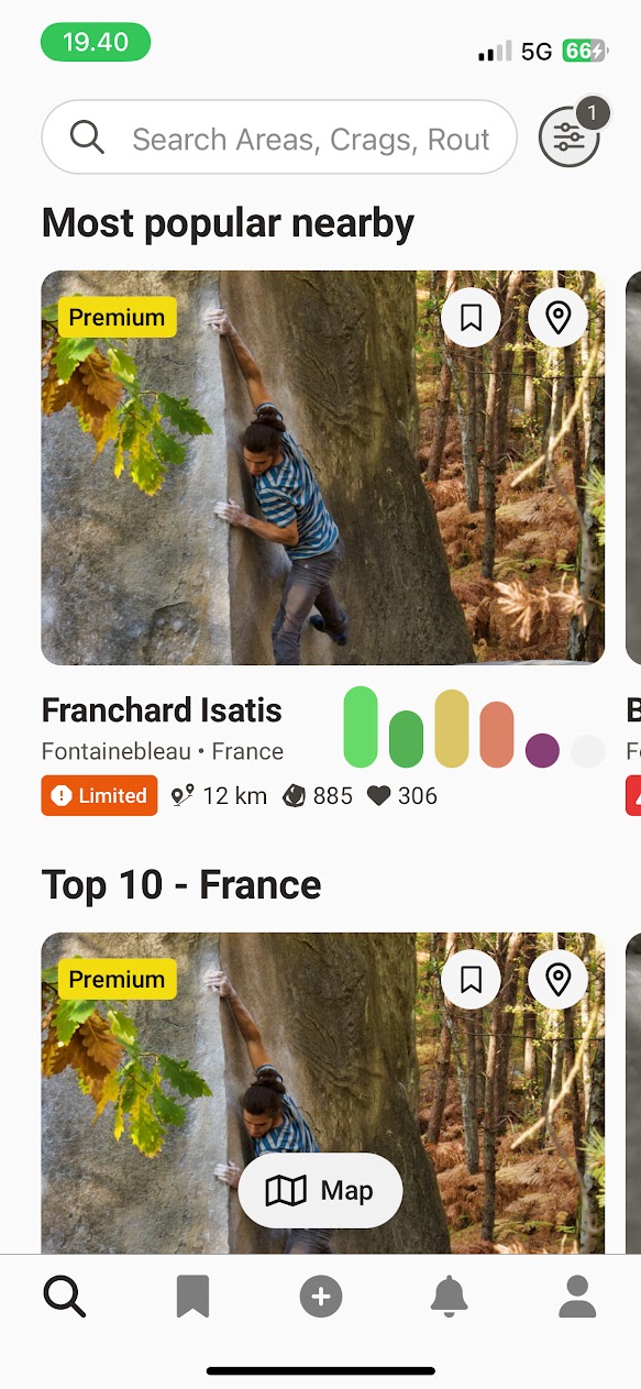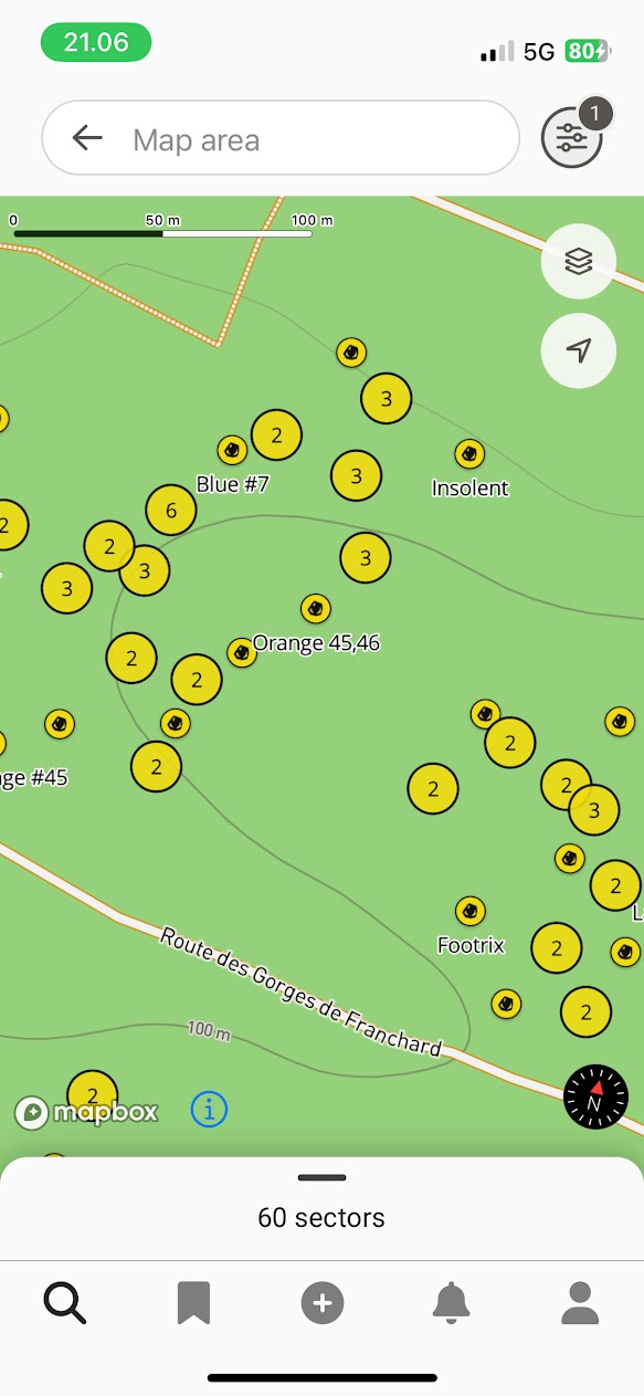 or more often try to get the map of the crag (should be some icon or button to go directly to it)